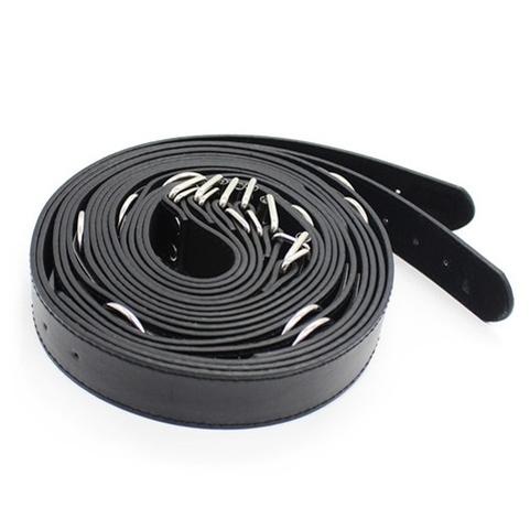מאפיינים: עור תעשייתי עמיד לנשיאה לאורך זמן; תפרים מחוזקים; אבזמי מתכת מצופים וטבעות D לשילוב מהיר עם קרבינרים; אורך מתכוונן להתאמה אישית; קצוות חלקים לנוחות מגע; קלות לניקוי ותחזוקה; קומפקטיות לאחסון ונשיאה. משתלבות נהדר עם קטגוריות אזיקים וקשירות, אביזרי סאדו ואביזרי ריסון.