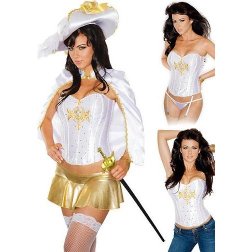 תחפושת מושקעת של מוסקטרית סקסית הכוללת מחוך עם ביריות , כובע, תחתוני חוטיני וחצאית מיני