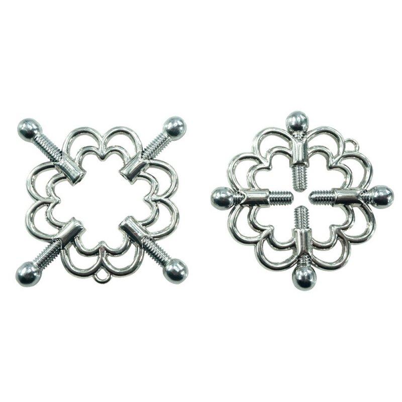 המצבטים עשויים ממתכת איכותית עם עיטור בצורת פרח, בעלי קצות גומי רכים להגנה על העור. ניתן להתאים את מידת הלחץ לכל משתמש וליהנות משימוש נוח ובטוח. מתאימים לשלל משחקי שליטה, מתאימים לגברים ולנשים כאחד ונכנסים בקלות לכל קופסת אביזרי סאדו-מאזו.